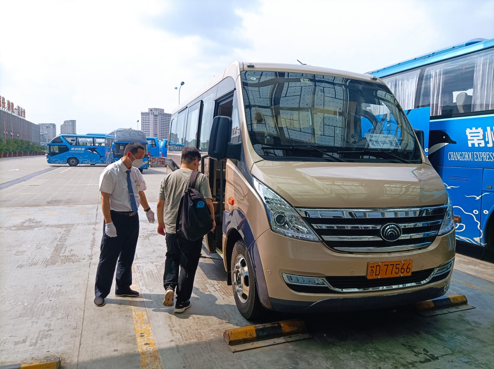6月1日是常州至南通班線升級(jí)為定制班車后的第一天,早上6:20班車順利準(zhǔn)點(diǎn)發(fā)車。