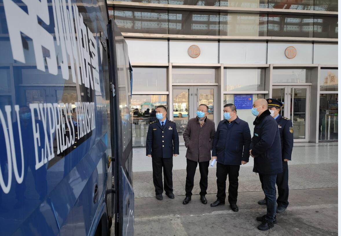 1月12日上午,省交通運輸綜合執(zhí)法局調(diào)研員周黃德一行至常州汽車客運站就道路運輸疫情防控進行督導檢查,市交通運輸執(zhí)法支隊副支隊長王丁柱,集團公司副總經(jīng)理費軒龍及站務分公司負責人陪同督查。